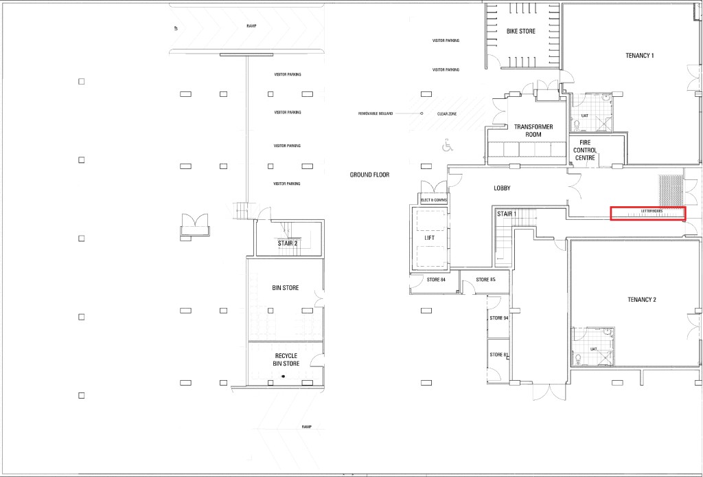 Mailboxes for the complex are located on the Ground Floor Level in the lobby.